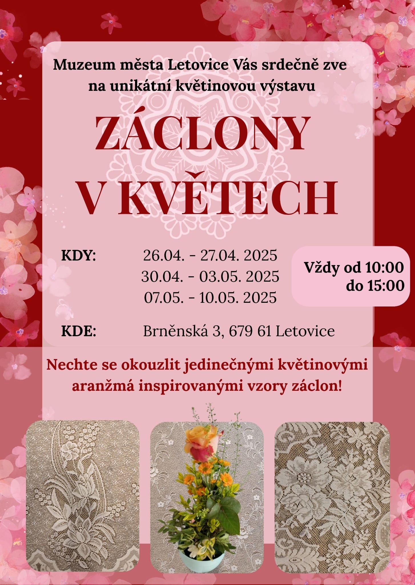 Nechte se okouzlit jedinečnými aranžmá z řezaných květin, vytvořenými podle okouzlujících květinových vzorů na záclonách. Na jednom místě můžete obdivovat krásu květů živé přírody i zručnost a umění tvůrců vzorů na záclonách.