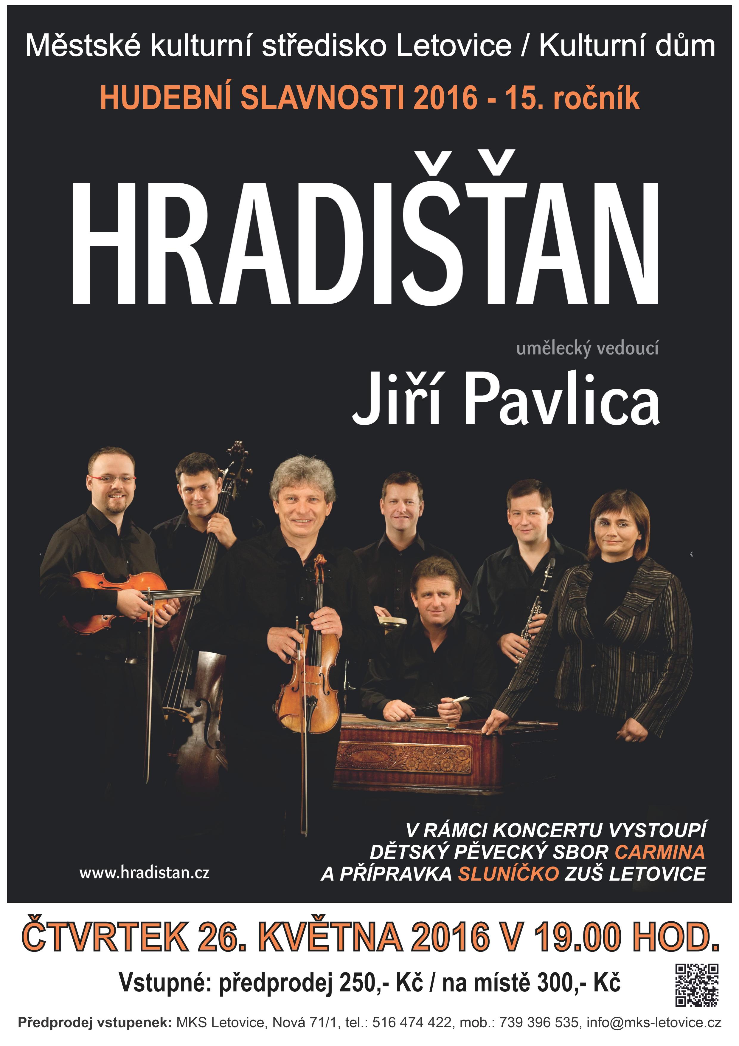 Koncert proběhne v rámci Hudebních slavností 2016 (14. ročník) a společně vystoupí Hradišťan a dětský pěvecký sbor Carmina a přípravka Sluníčko ZUŠ Letovice