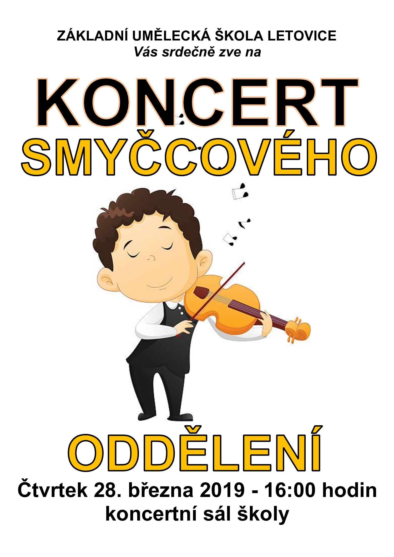 ZUŠ Letovice srdečně zve na Koncert smyčcového oddělení, který se uskuteční ve čtvrtek 28. března 2019 v 16.00 hodin v koncertním sále školy.