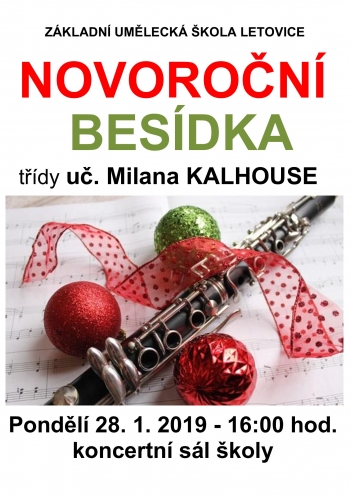 ZUŠ Letovice zve všechny na Novoroční besídku třídy pana učitele Milana Kalhouse, která se uskuteční v koncertním sálu školy.