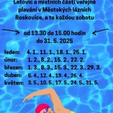 Veřejné bruslení pro občany Letovic. Město Letovice zajistilo pro občany Letovic a místních částí veřejné bruslení v areálu Zimního stadionu Boskovice, a to vždy 1x za 14 dní v sudou neděli do 31. 3. 2025. Doprava vlastní, vstupenkou do areálu je průkaz totožnosti alespoň jednoho člena...