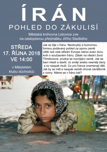 Cestopisná přednáška pana Jiřího Sladkého. Přijďte si poslechnout jak se žije v Íránu. Neobvyklý a humornou formou podávaný pohled za oponu země větší než celá střední Evropa nabízí autor dvou knih o současném Íránu.