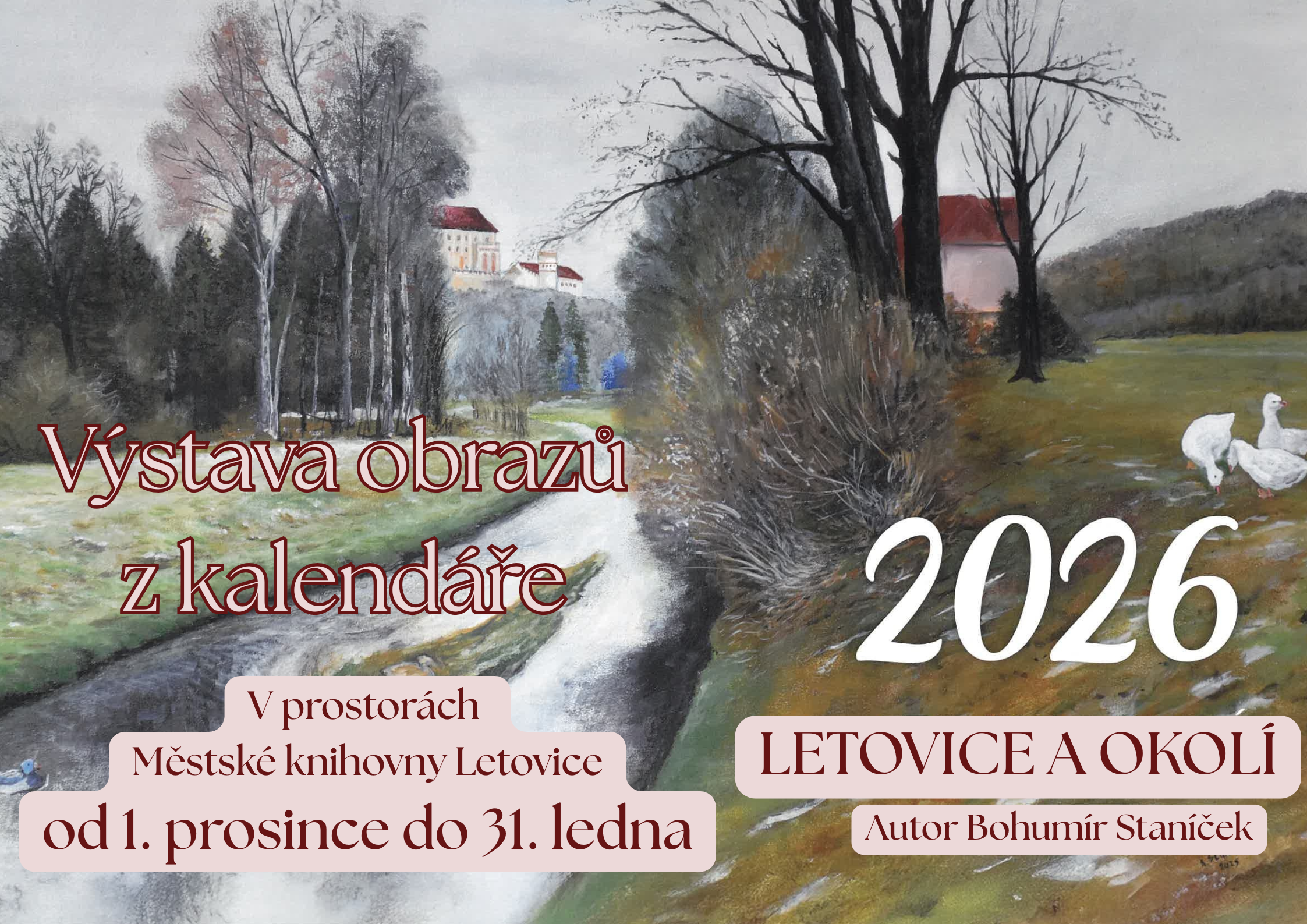Výstava obrazů z kalendáře LETOVICE A OKOLÍ 2026 pana Bohumila Staníčka je přístupná v prostorech knihovny v její otevírací době a to až do konce ledna 2026.