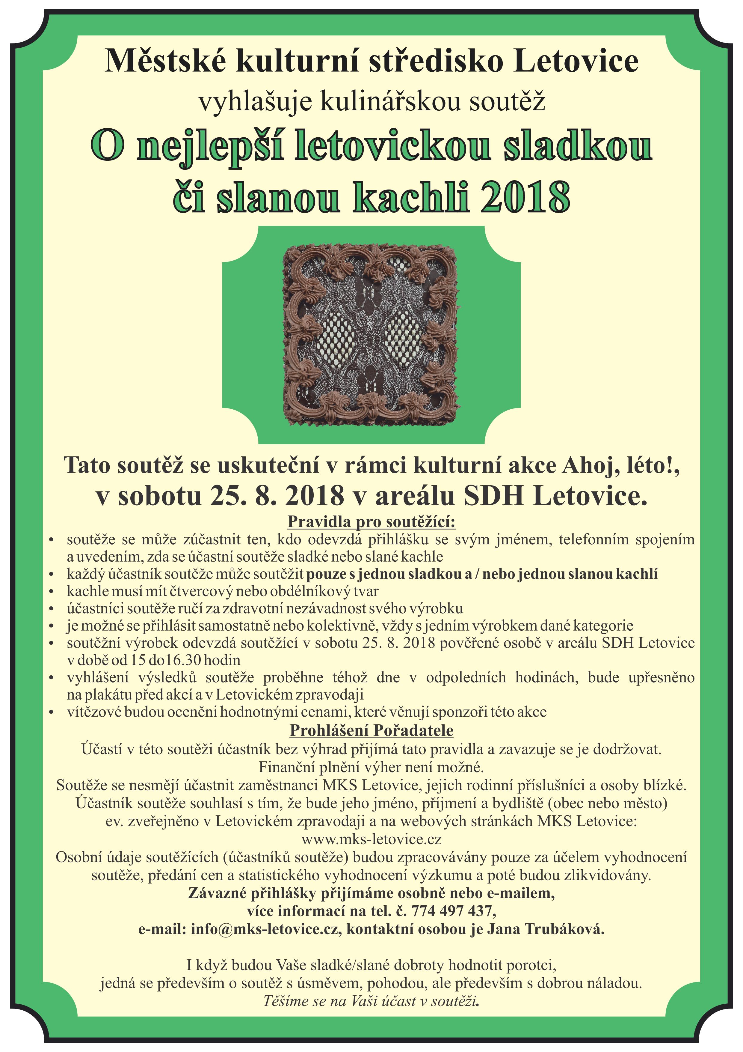 SOUTĚŽ "O nejlepší letovickou sladkou či slanou kachli 2018"