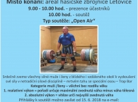 - Letovický „TRAP BAR“ – o pohár starosty města Letovice - od 9.00 hodin - propagační otevřená soutěž sportovního klubu silového trojboje „SLAVS POWER“ v netradiční silové disciplíně, vyhlášení soutěže na akci Ahoj, léto!