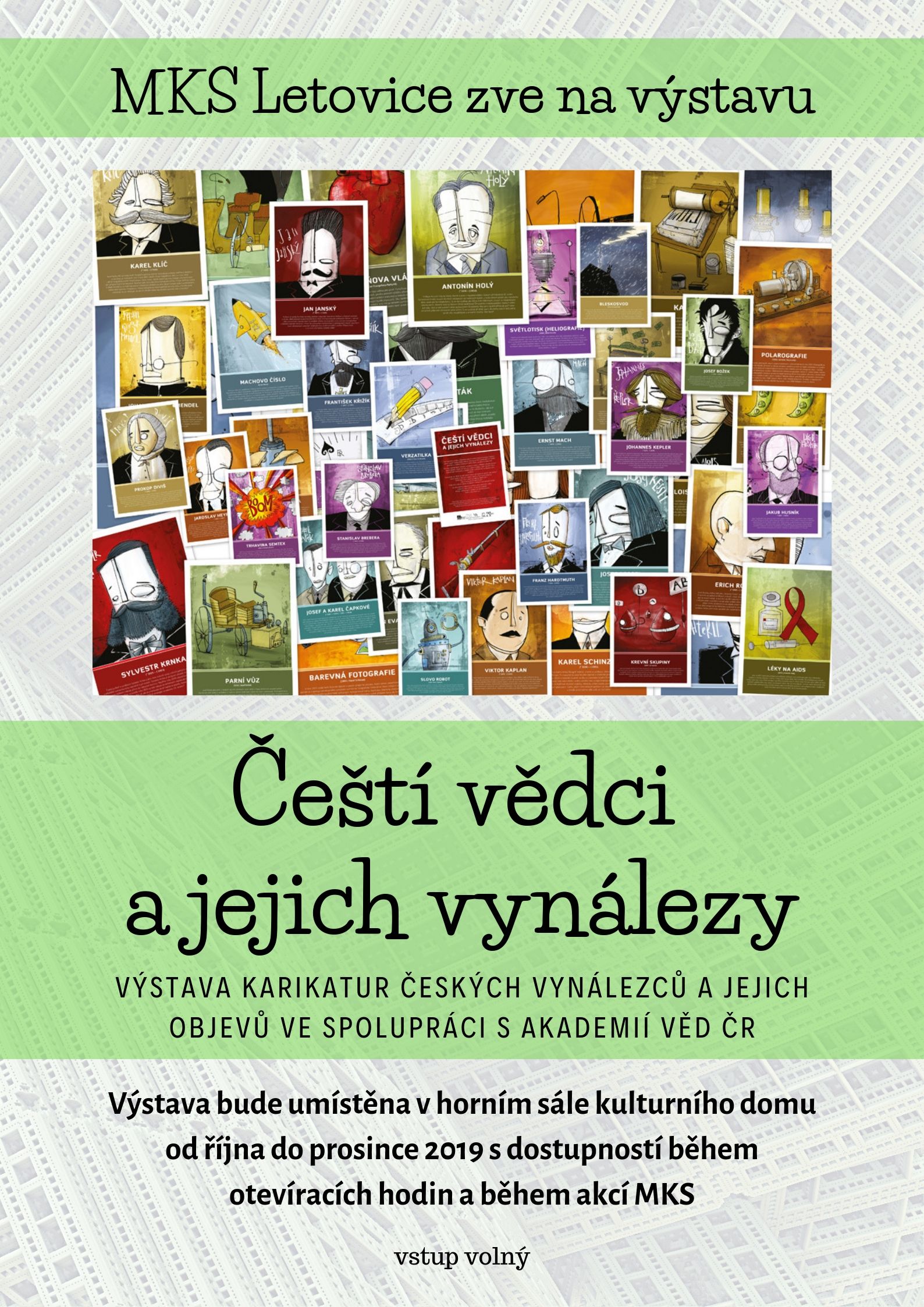 Výstava karikatur českých vynálezů a jejich objevů ve spolupráci s Akademií věd ČR.