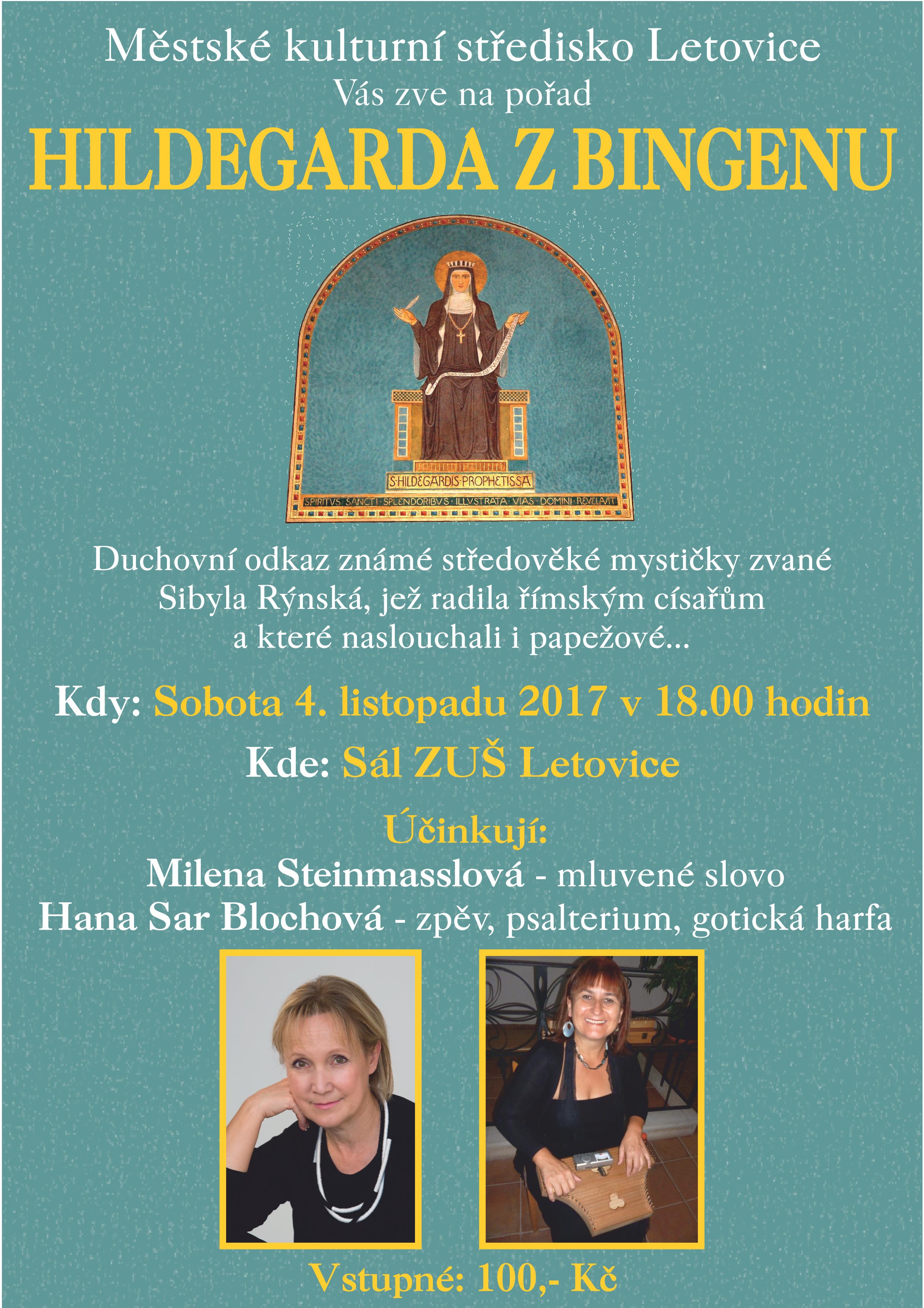 Přijměte pozvání na komponovaný pořad Hildegarda z Bingenu. Seznámíte se s mimořádnou osobností 12. století, svatou Hildegardou z Bingenu – abatyší, magistrou, teoložkou, skladatelkou, malířkou a ženou. Nahlédneme to duchovního odkazu známé středověké mystičky zvané Sibyla Rýnská, jež radila římským císařům a které naslouchali i papežové... a které se dají aplikovat i v současnosti, v naší společnosti.
