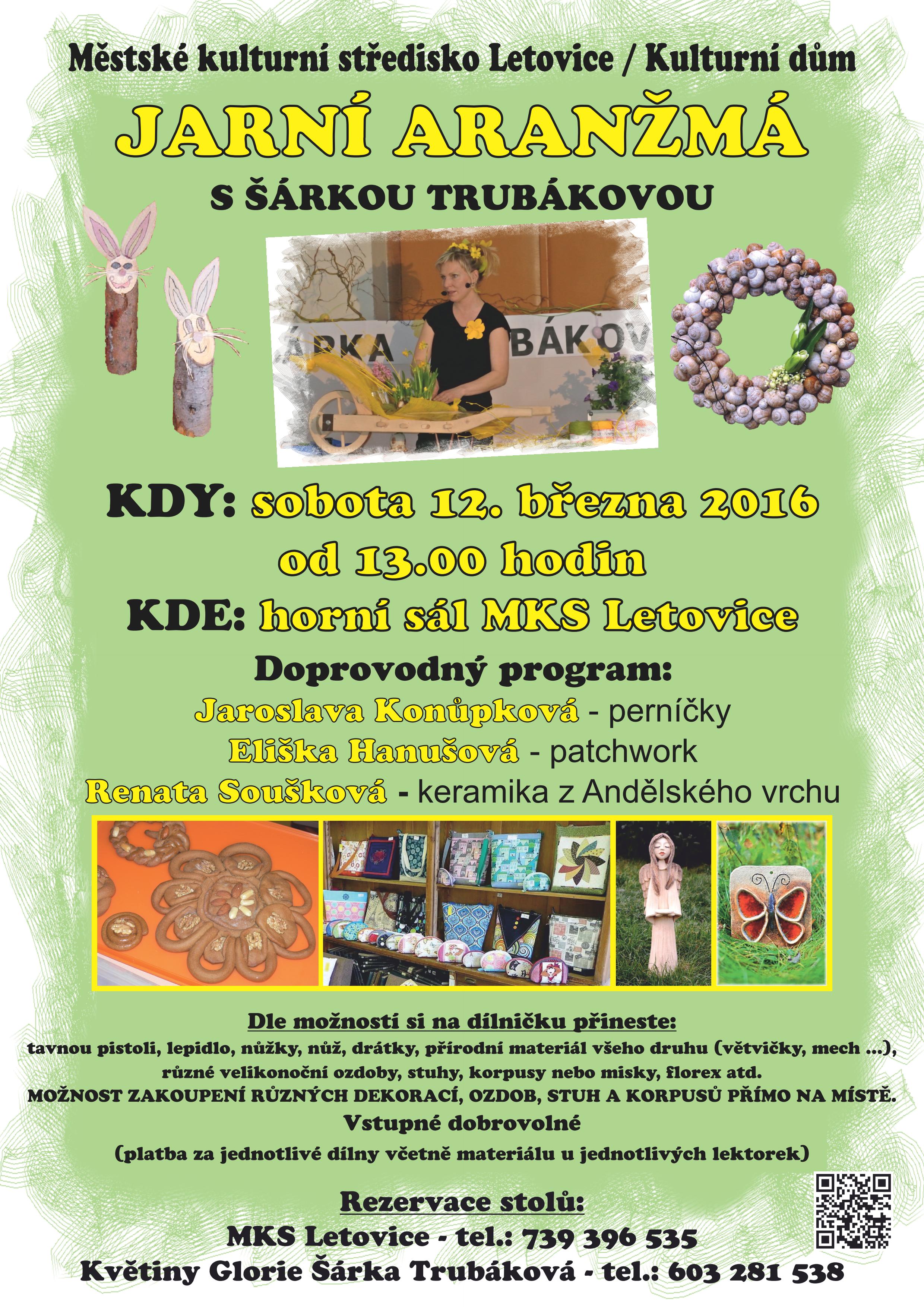 Rezervace stolů: MKS Letovice - tel.: 739 396 535, Květiny Glorie Šárka Trubáková - tel.: 603 281 538