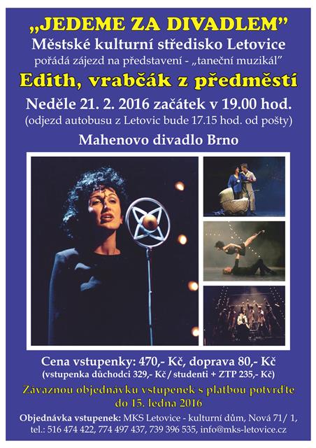 "JEDEME ZA DIVADLEM" - Edith, vrabčák z předměstí - Mahenovo divadlo Brno