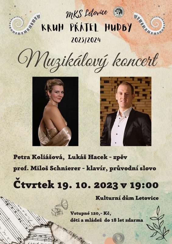 Prof. PhDr. Miloš Schnierer - klavír, průvodní slovo, Petra Koliášová - mezzosoprán a Lukáš Hacek - baryton