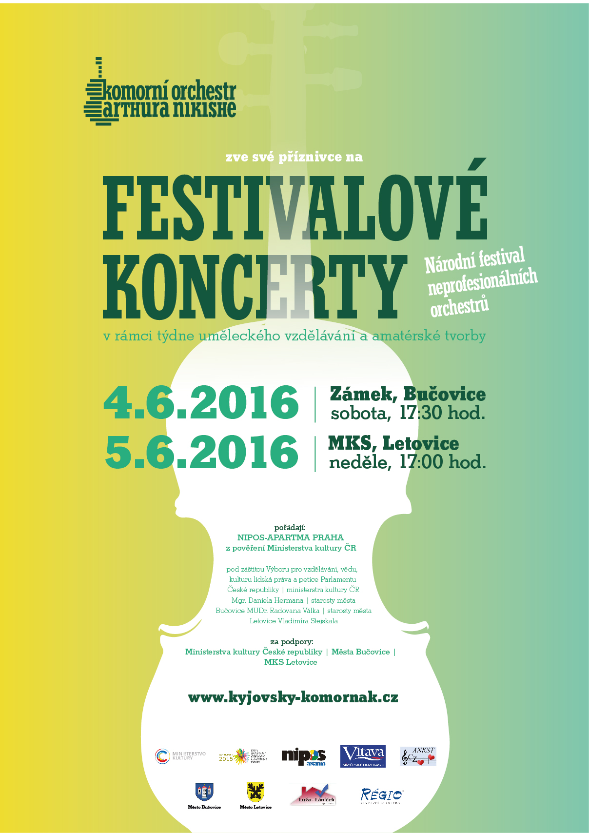V roce 2016 proběhnou jihomoravské festivalové koncerty 4. června na zámku v Bučovicích a 5. června v Městském kulturním středisku Letovice. Představí se na něm pět souborů – pořádající Komorní orchestr Arthura Nikische na obou koncertech, v Bučovicích Smyčcový orchestr Něhoslava Kyjovského z Bystřice nad Pernštejnem, Klarinetové kvarteto ze Zlína a v Letovicích Komorní orchestr z Kopřivnice,slovenský host Sláčikový orchester Dolný Kubín a za Letovice vystoupí Komorní smyčcový soubor ZUŠ Letovice. Repertoár jednotlivých souborů není omezen a tak jsou koncerty vždy zajímavým a pestrým porovnáním umění amatérských hudebníků.