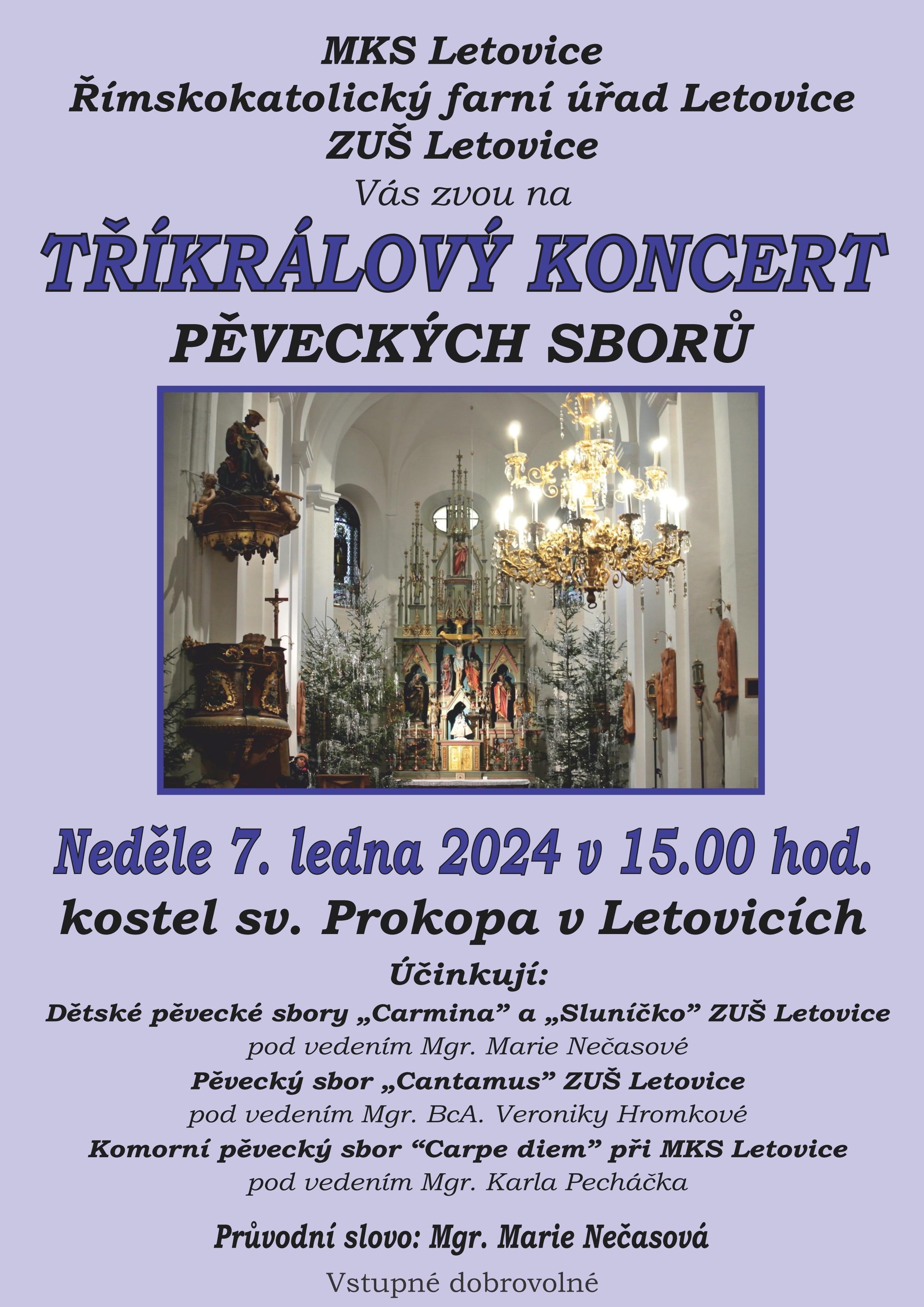 - Dětské pěvecké sbory „Carmina” a „Sluníčko” ZUŠ Letovice pod vedením Mgr. Marie Nečasové a Dagmar Lžíčařové, DiS.