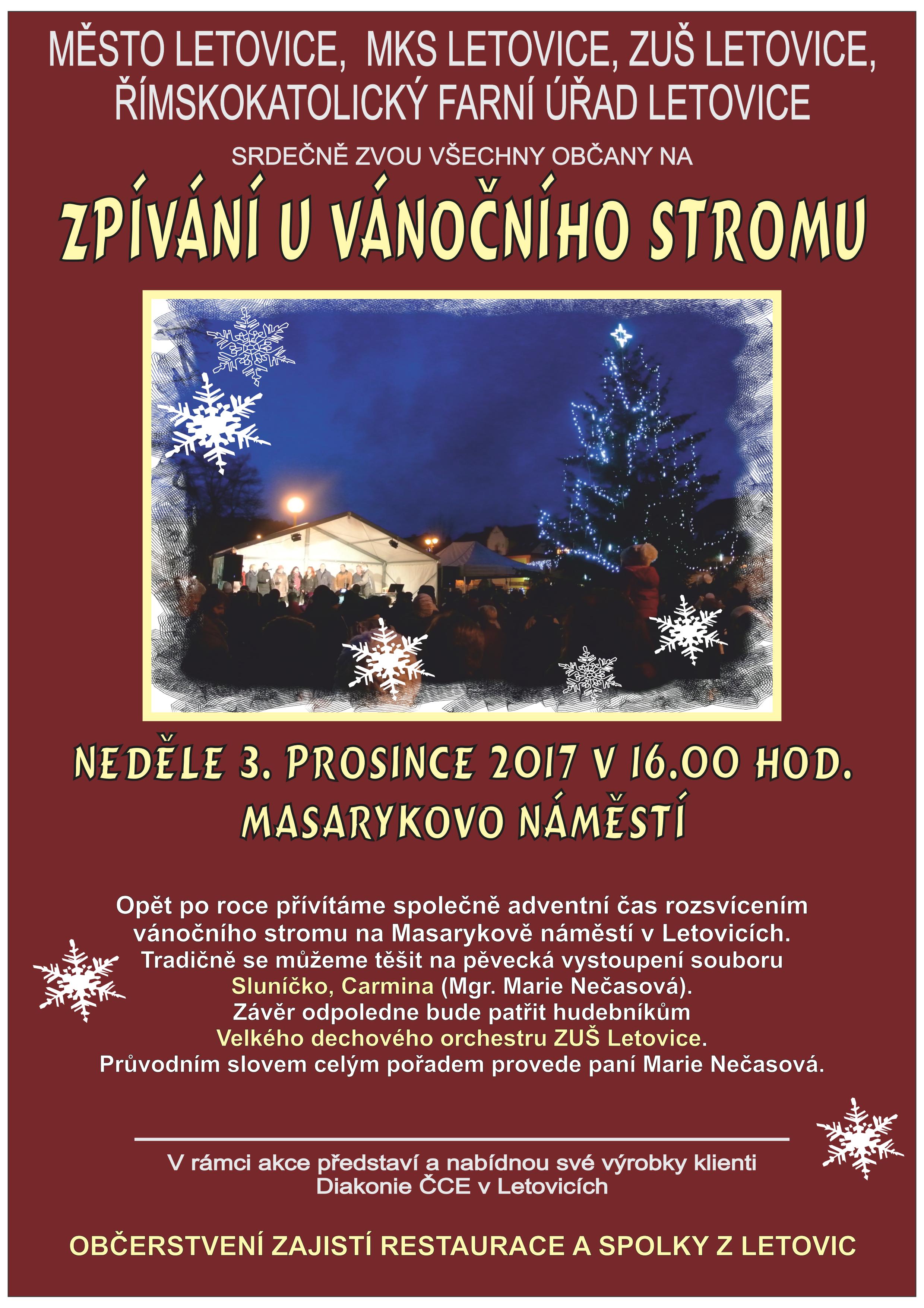 Tradičně se můžeme těšit na pěvecká vystoupení souboru Sluníčko a Carmina ZUŠ Letovice (Mgr. Marie Nečasová). Závěr odpoledne bude patřit hudebníkům Velkého dechového orchestru ZUŠ Letovice. Průvodním slovem celým pořadem provede paní Marie Nečasová.