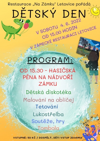 Chceš si užít legraci, zasoutěžit si, zatancovat, zastřílet si z opravdového luku na terč a hlavně si užít tu nejlepší zábavu v hasičské pěně? Vezmi kamarády, rodiče, sourozence, babičku a dědečka a v sobotu 4. června 2022 společně dorazte do venkovních prostor letovického zámku, kde to všechno vypukne od 15.00 hodin. Kromě tomboly nebude chybět ani bohaté občerstvení.