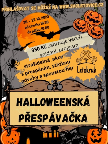 Trochu strašidelná oblíbená akce s přespáním v duchu Halloweenu.