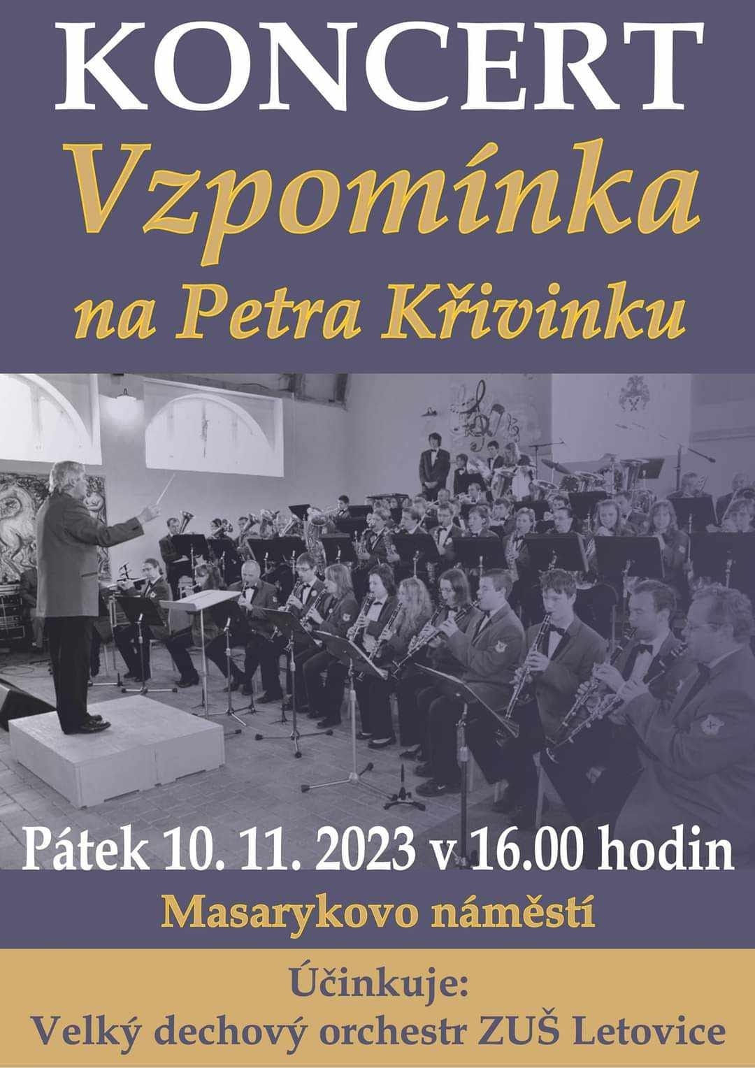 Vzpomínka na Petra Křivinku - koncert na Masarykově náměstí v Letovice, účinkuje: Velký dechový orchestr Letovice, www.zusletovice.cz