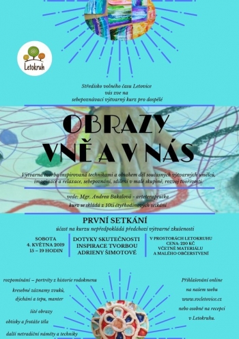 Kurzy vede: Mgr. Andrea Bakalová (arteterapeutka), kurz se skládá z 10 čtyřhodinových setkání, účast na kurzu nepředpokládá předchozí výtvarné zkušenosti. Přihlášky online nebo osobně na recepci Letokruhu, Letokruh Letovice, tel.: 731 481 033, info@svcletovice.cz, www.svcletovice.cz