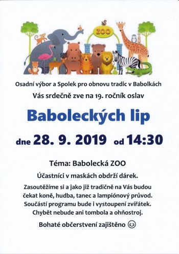 Osadní výbor a Spolek pro obnovu tradic v Babolkách zve všechny na 19. ročník oslav Baboleckých lip.
