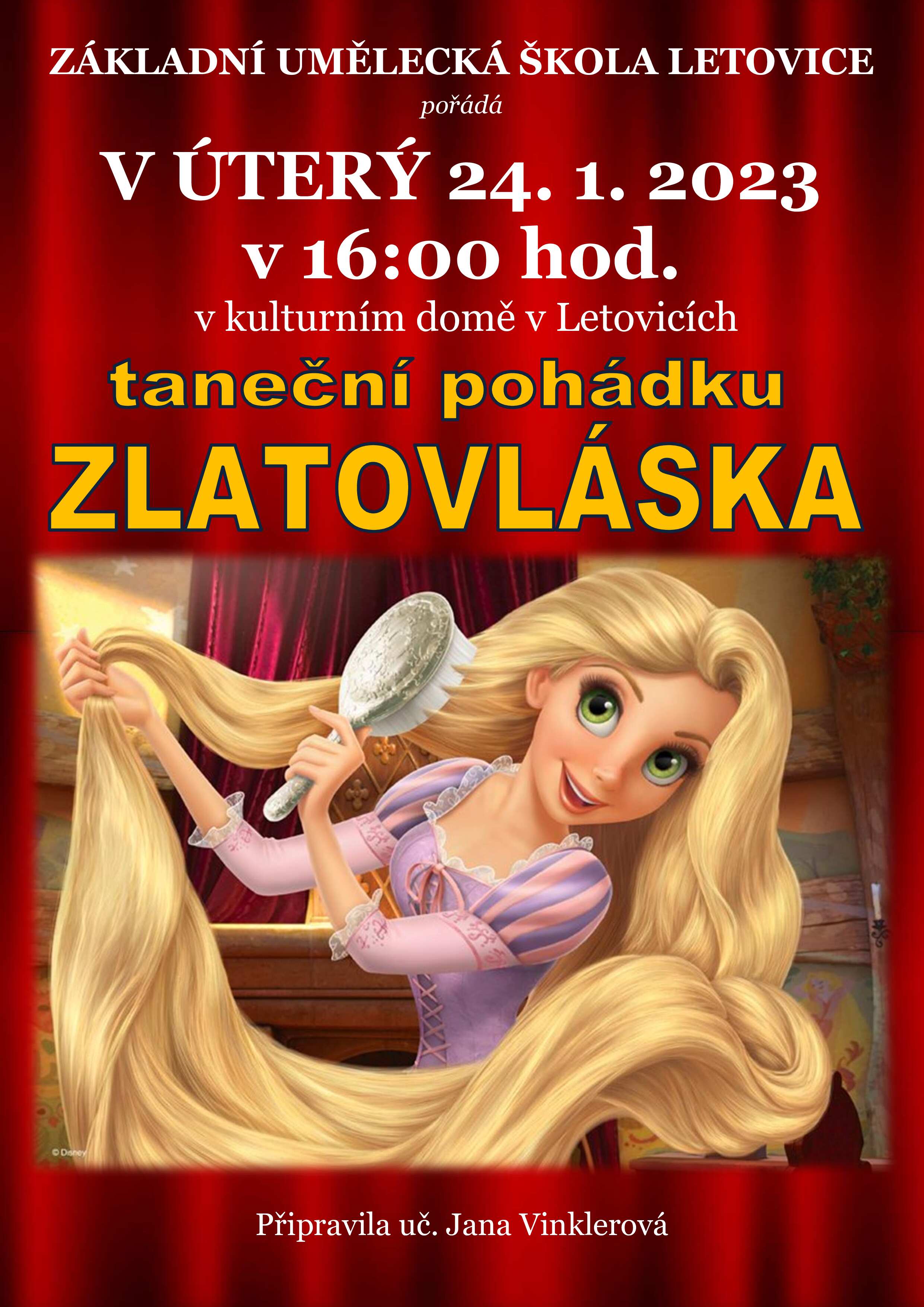 Přijměte pozvání ZUŠ Letovice na taneční pohádku Zlatovláska, kterou pro vás připravila paní učitelka Jana Vinklerová.