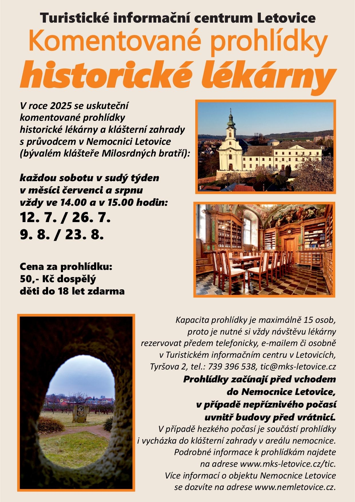 Další komentované prohlídky barokní lékárny proběhnou v roce 2026, termíny bodu zveřejněny.