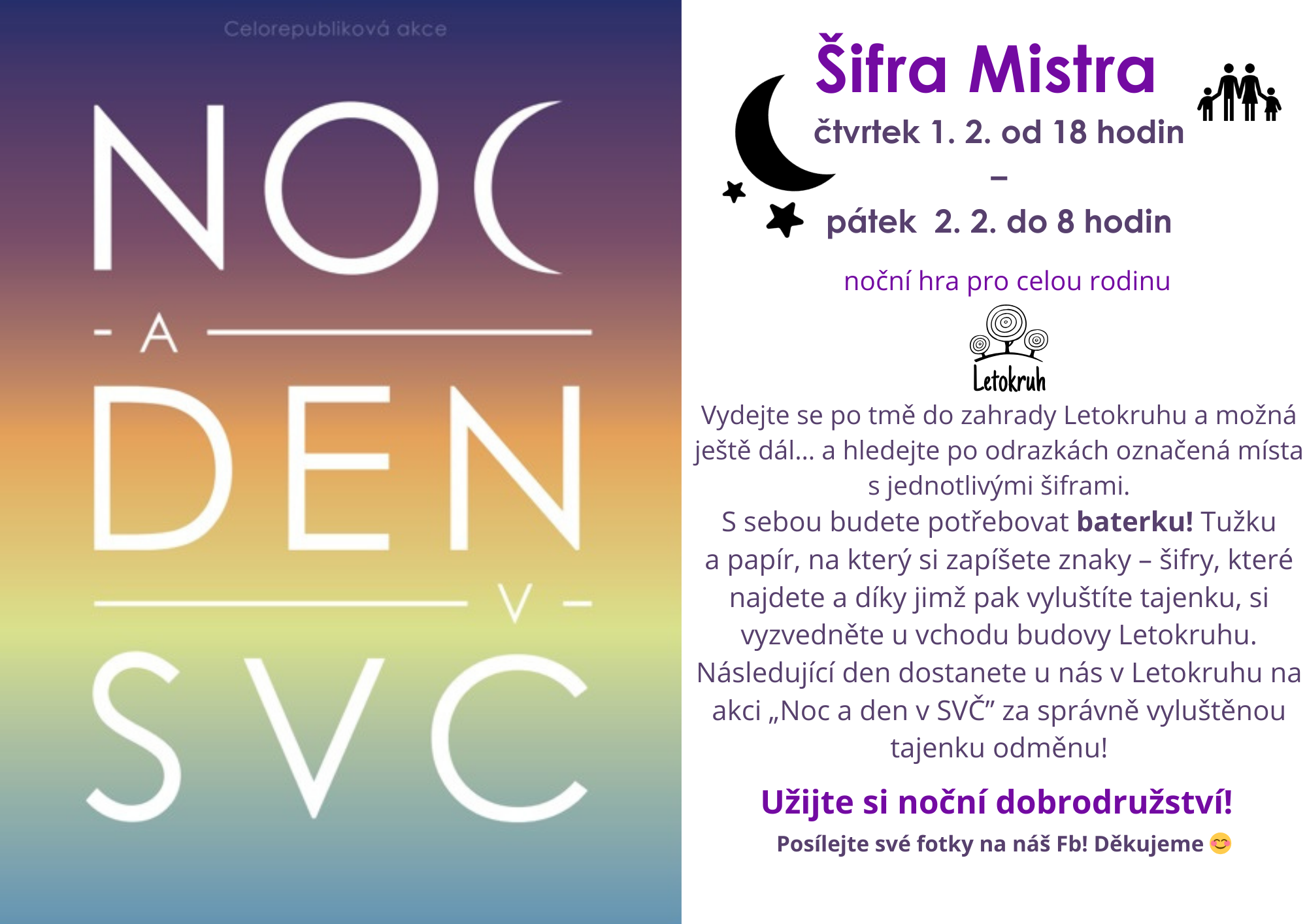 V rámci celorepublikové akce NOC A DEN V SVČ zveme všechny dobrodruhy na noční šifrovačku do naší zahrady a možná ještě dál...