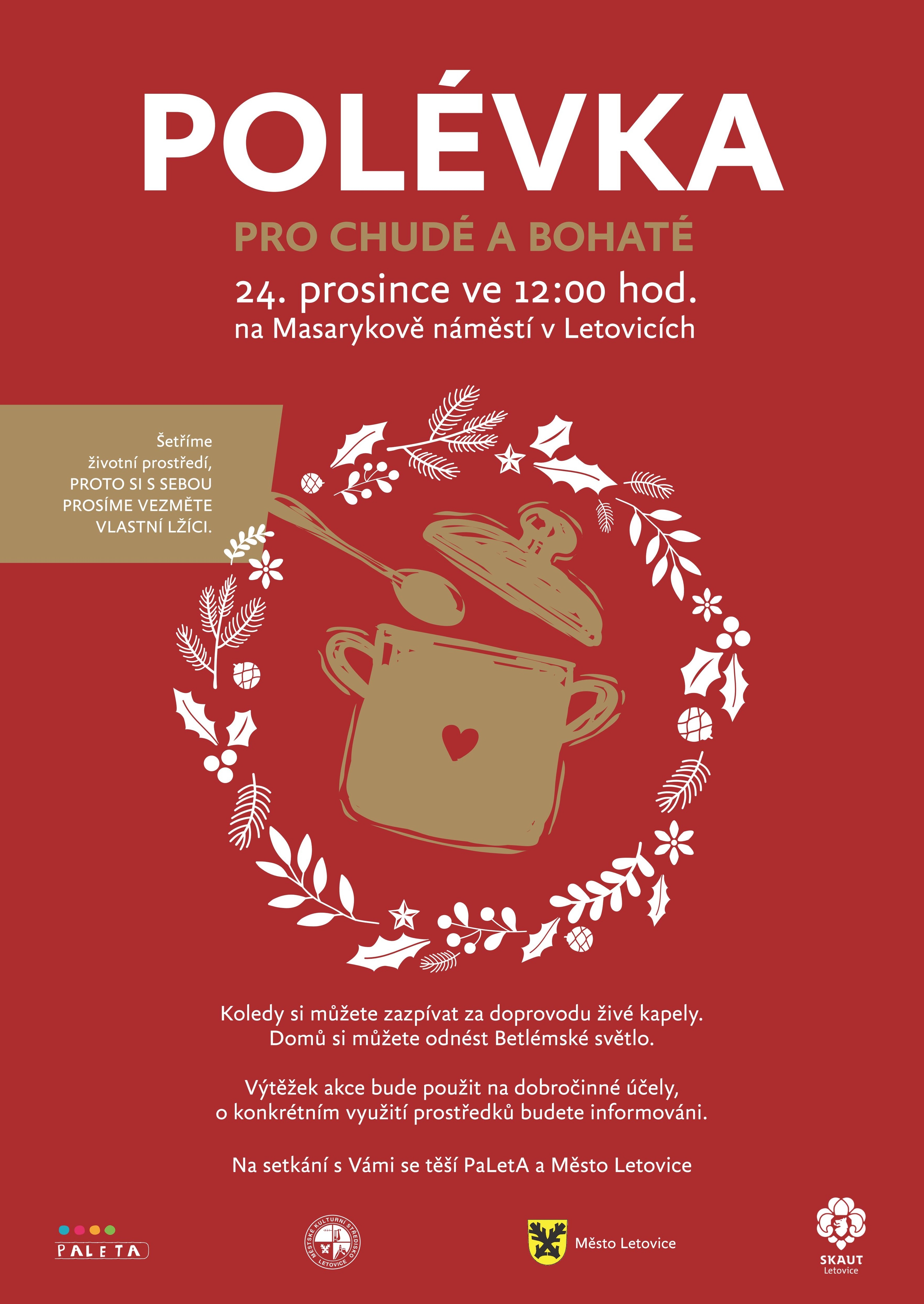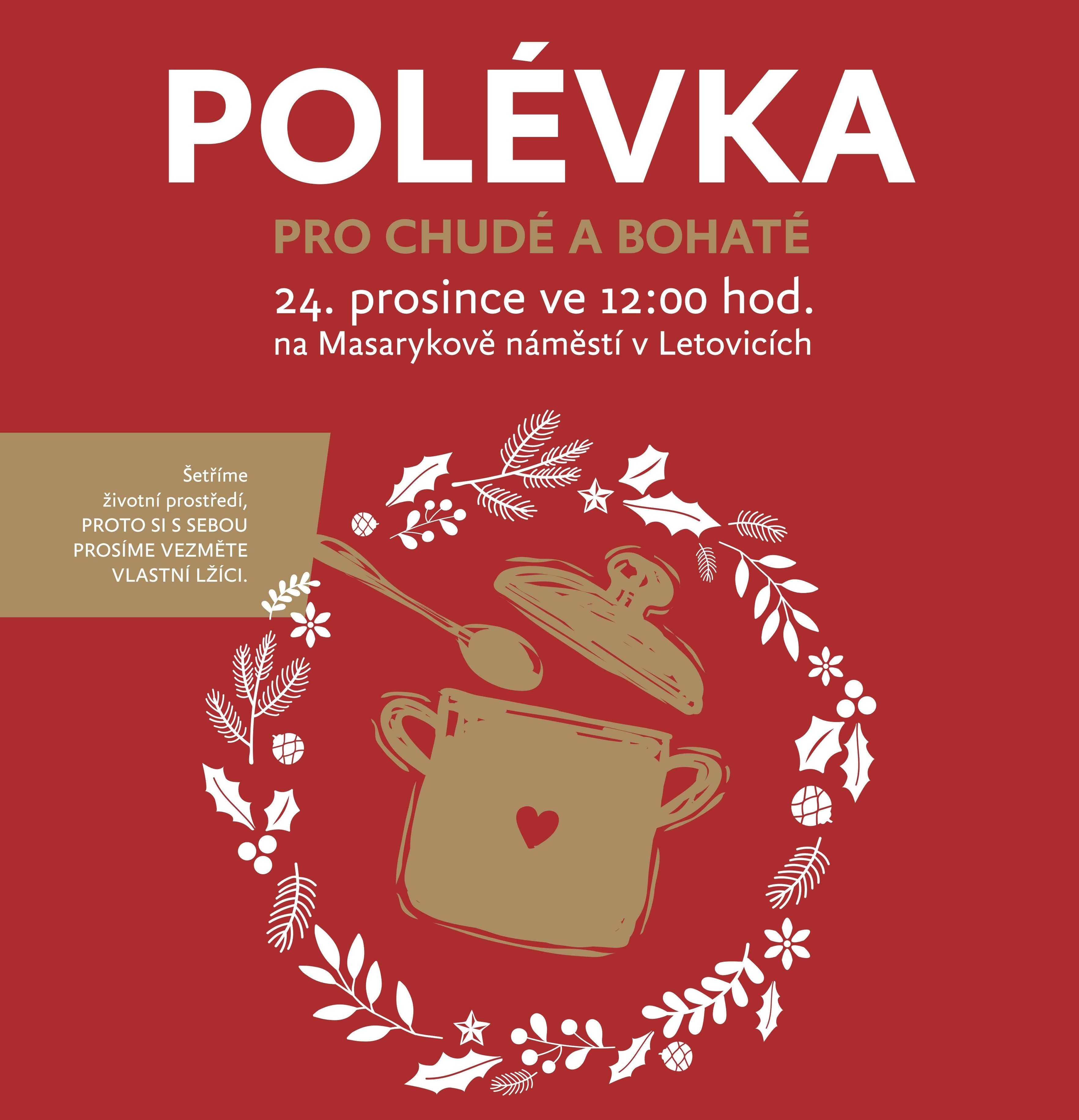 Šetříme životní prostředí, proto si prosíme vezměte VLASTNÍ LŽIČKU. Akce se koná za každého počasí.