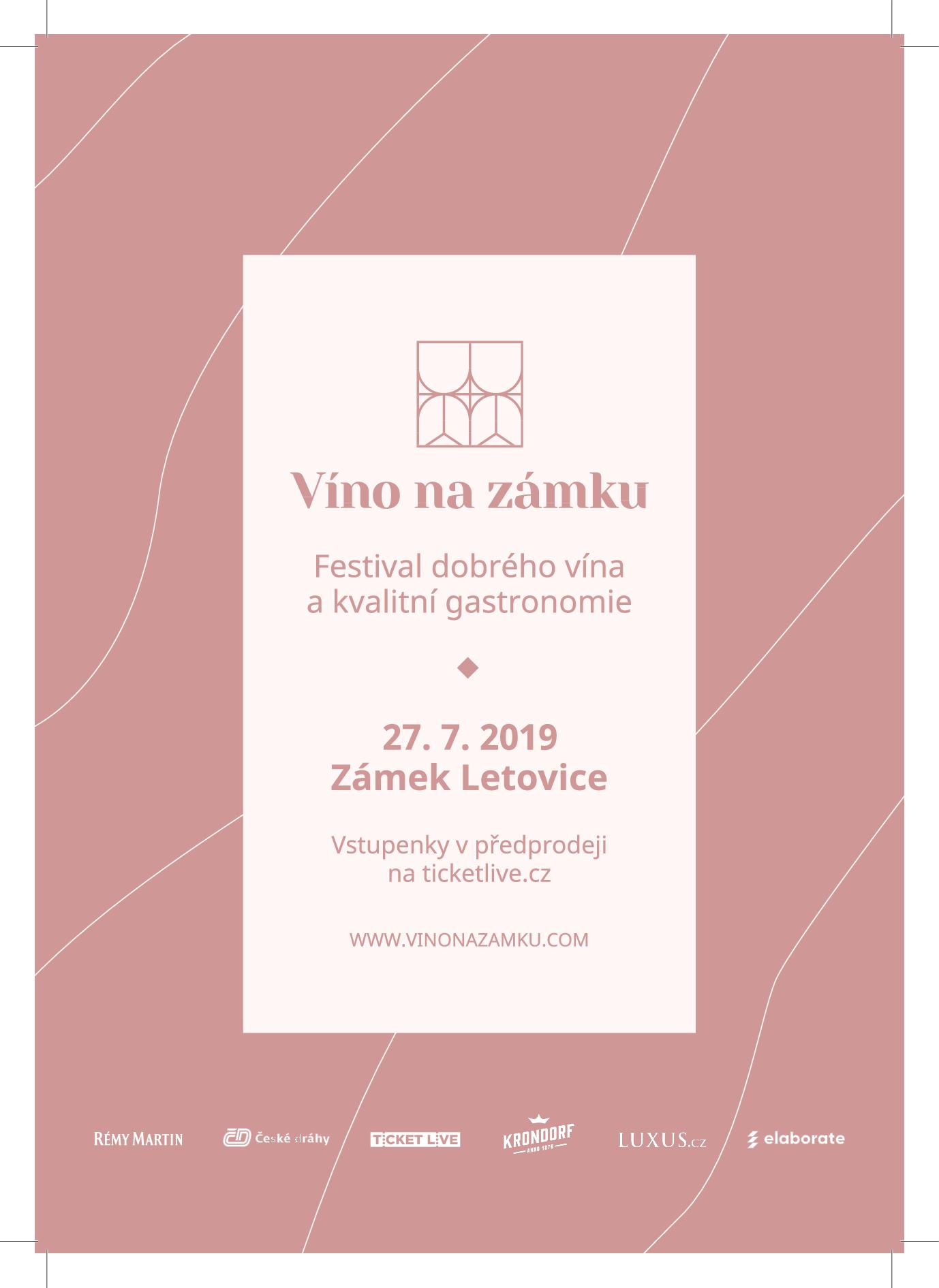Festival vín, ochutnávka moravských a českých vín, ukázky moderní gastronomie. Hlavní myšlenka tohoto festivalu je dobré víno a kvalitní gastronomie. Více jak 30 pečlivě vybraných vinařů a dodavatelů vína se letos bude prezentovat na zámku Letovice, aby vám představili ta nejlepší vína, které lze v České republice ochutnat. Program: 12.00–18.00 hodin - Hlavní část festivalu – volná degustace, 18.00–19.00 hodin - Rémy Cointreau Masterclass, 20.00–22.00 hodin - Degustační večeře doprovázená raritními víny a zakončená ochutnávkou koňaku Louis XIII / vstup pouze s VIP vstupenkou. Zámek Letovice, Zámecká restaurace Letovice, Zámek č. p. 4/1, tel.: 734 865 960, email: zameckarestauraceletovice@gmail.com, www.zameckarestauraceletovice.webnode.cz