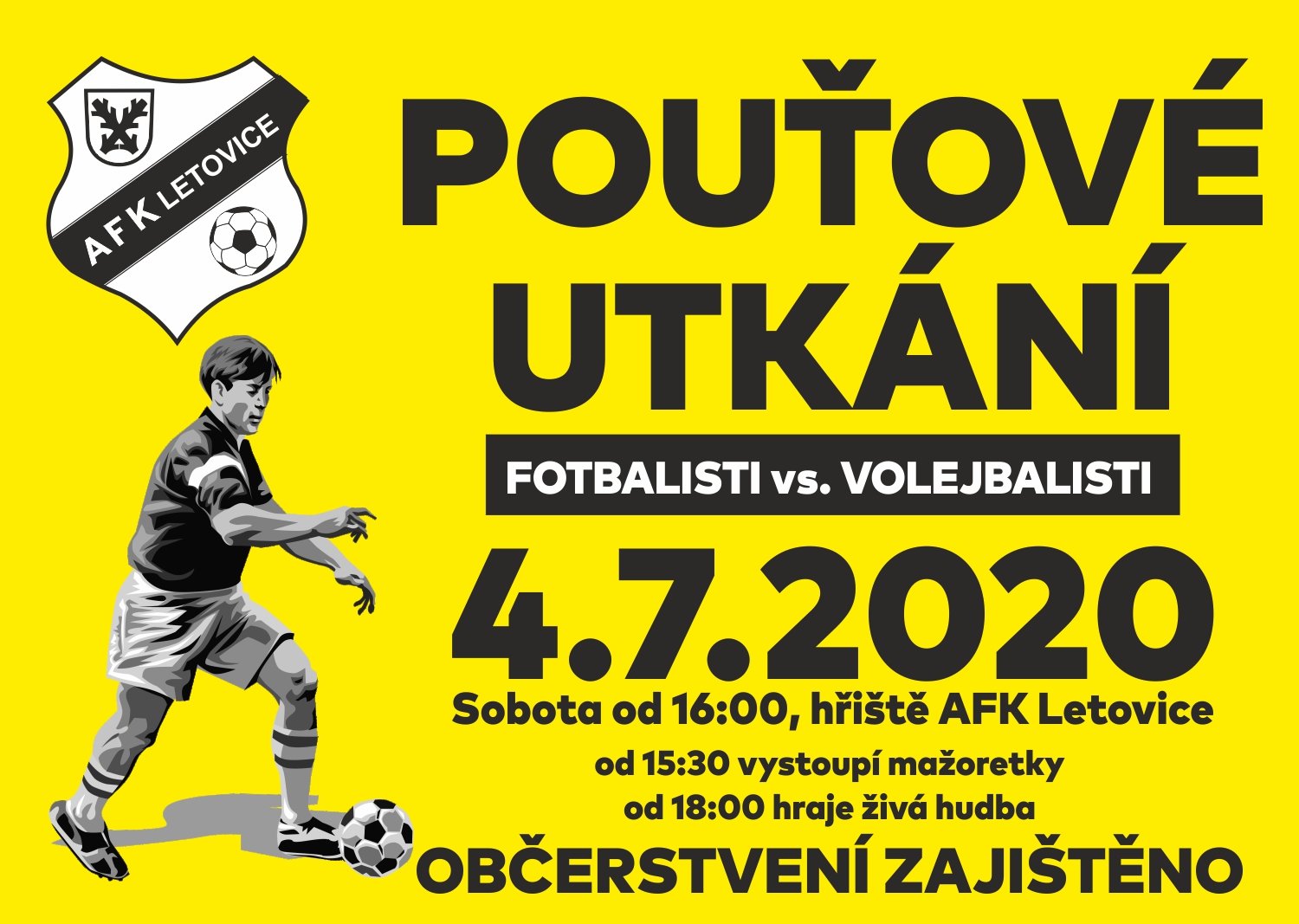 Na sobotní pouťové odpoledne je potom připraveno vystoupení mažoretek a fotbalové utkání FOTBALISTI vs.VOLEJBALISTI, v podvečer zahraje živá hudba. Občerstvení zajištěno