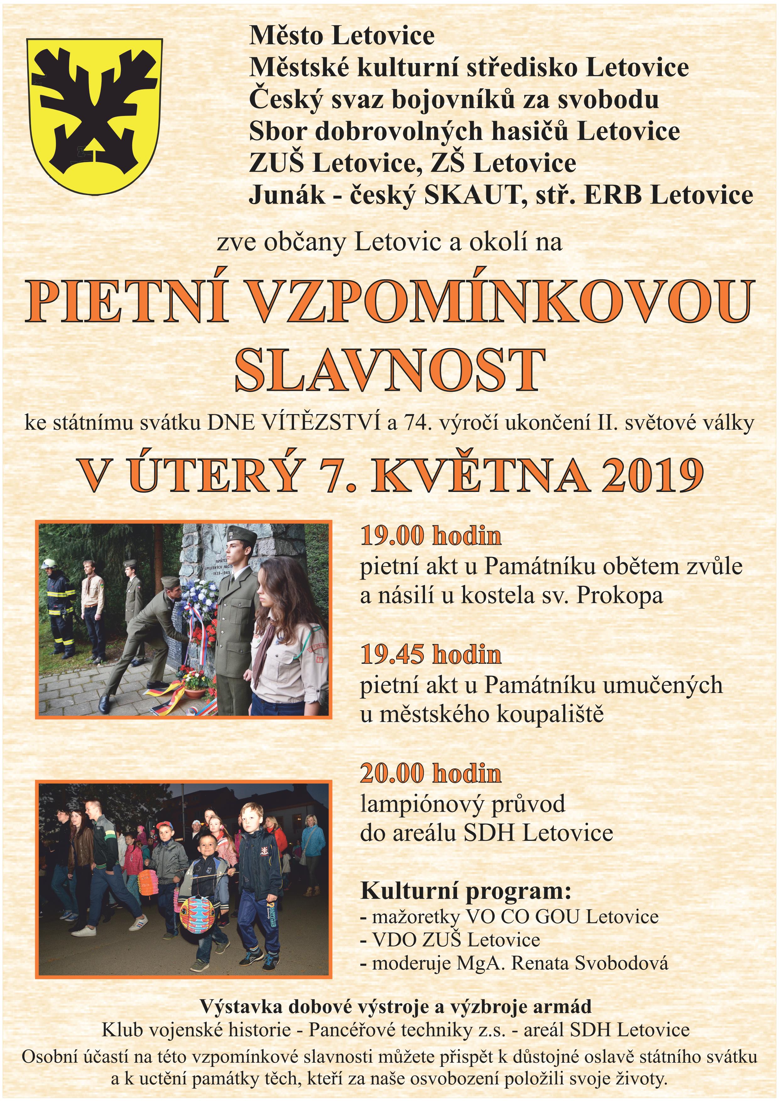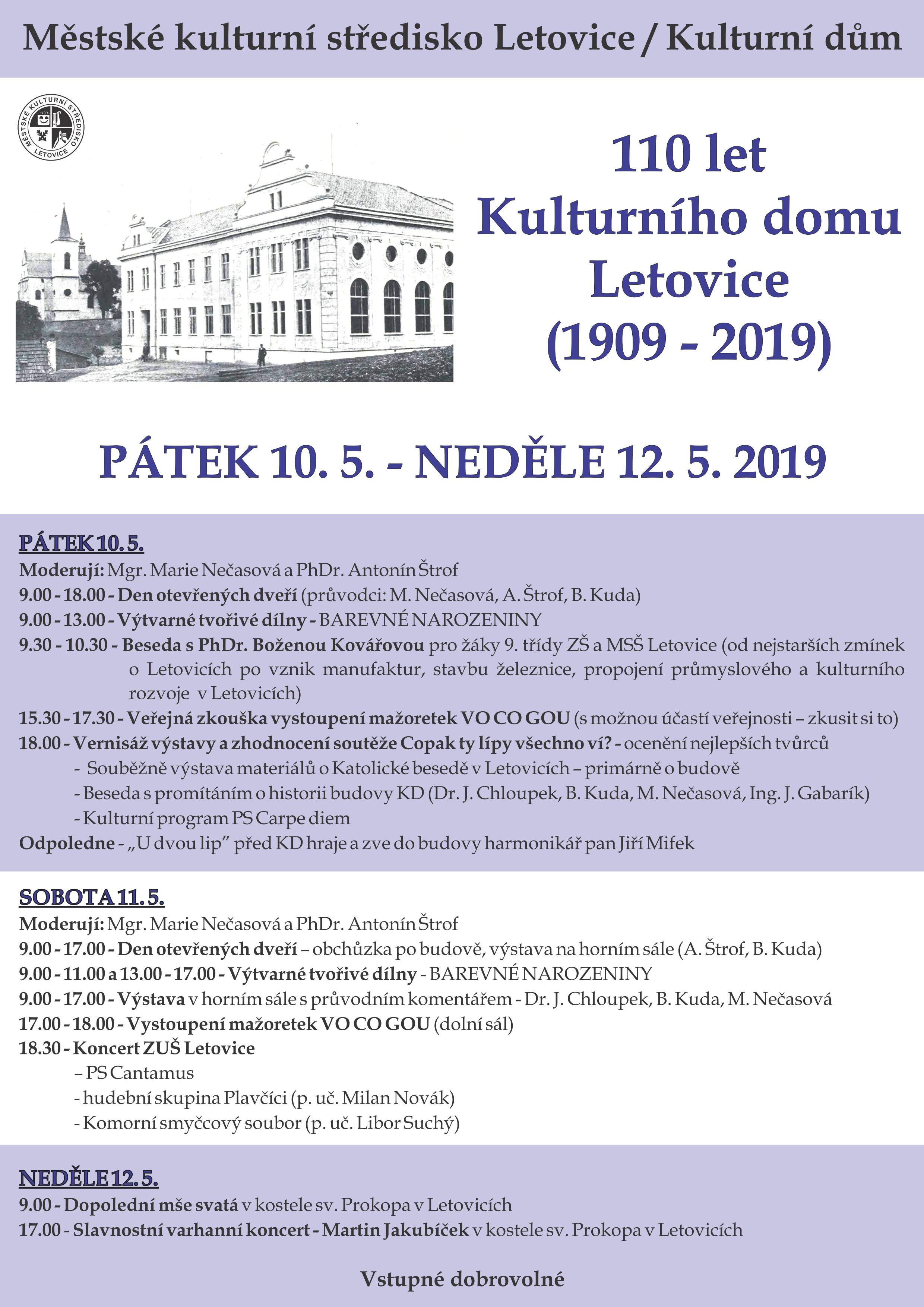 9.30 - 10.30 - Beseda s PhDr. Boženou Kovářovou pro žáky 9. třídy ZŠ a MSŠ Letovice (od nejstarších zmínek o Letovicích po vznik manufaktur, stavbu železnice, propojení průmyslového a kulturního rozvoje v Letovicích)