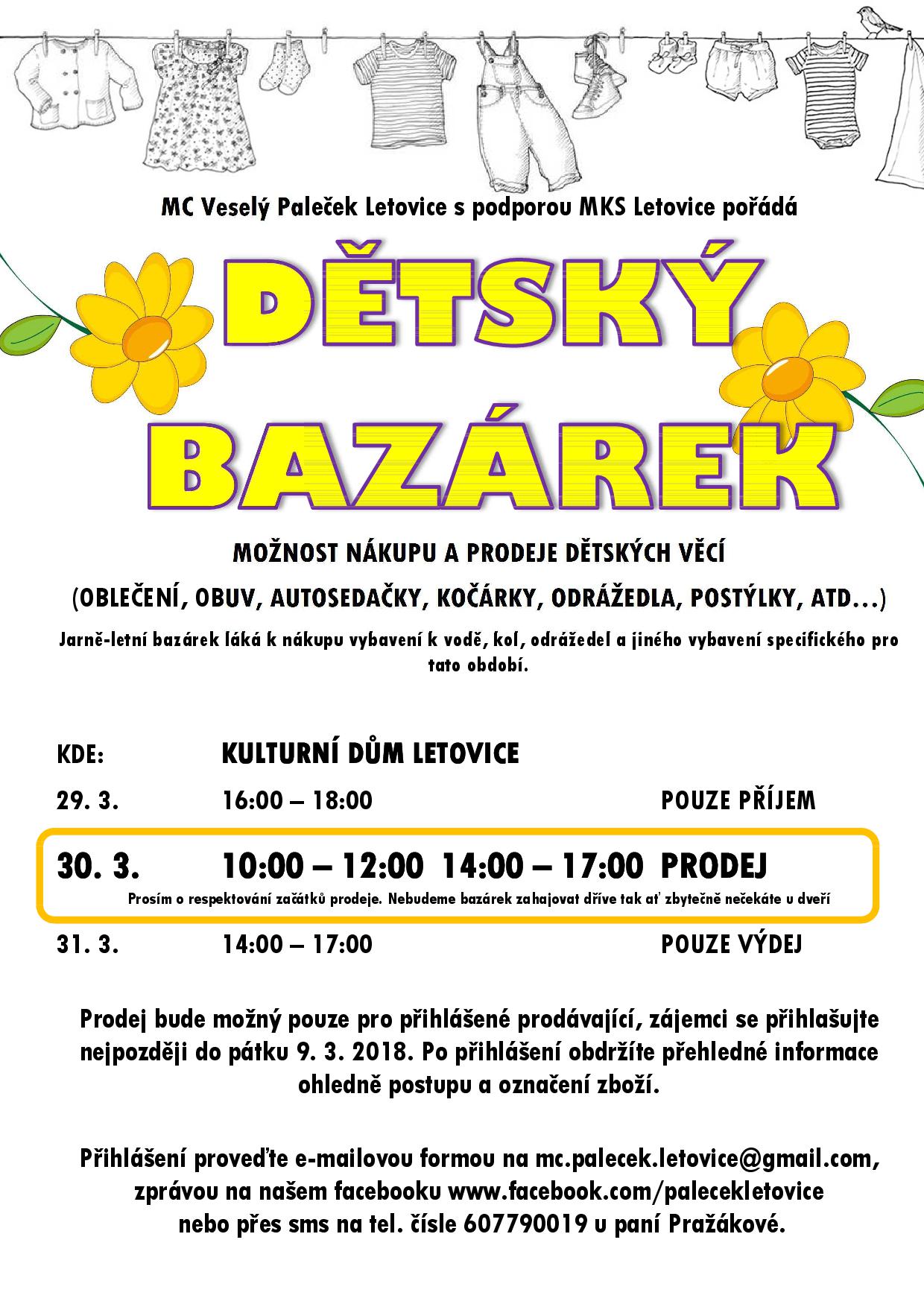 Prodej bude možný pouze pro přihlášené prodávající, zájemci se přihlašujte nejpozději do středy 27. 3. 2019.