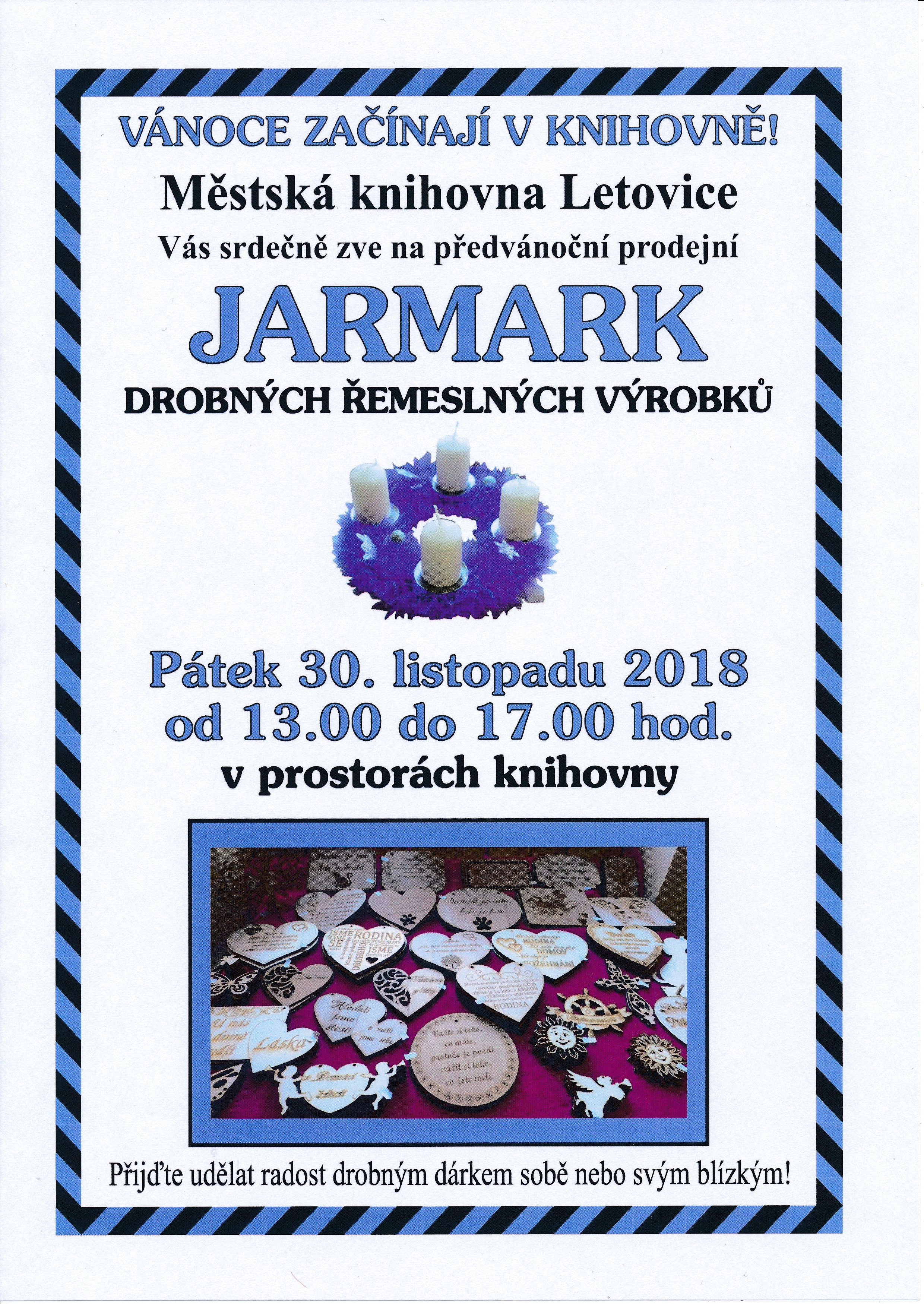 Městská knihovna Letovice vás srdečně zve na předvánoční prodejní jarmark drobných řemeslných výrobků.